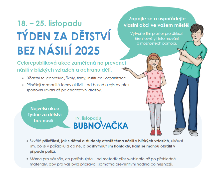 Naše škola se zapojila do projektu BUBNOVAČKA - týden za dětství bez násilí